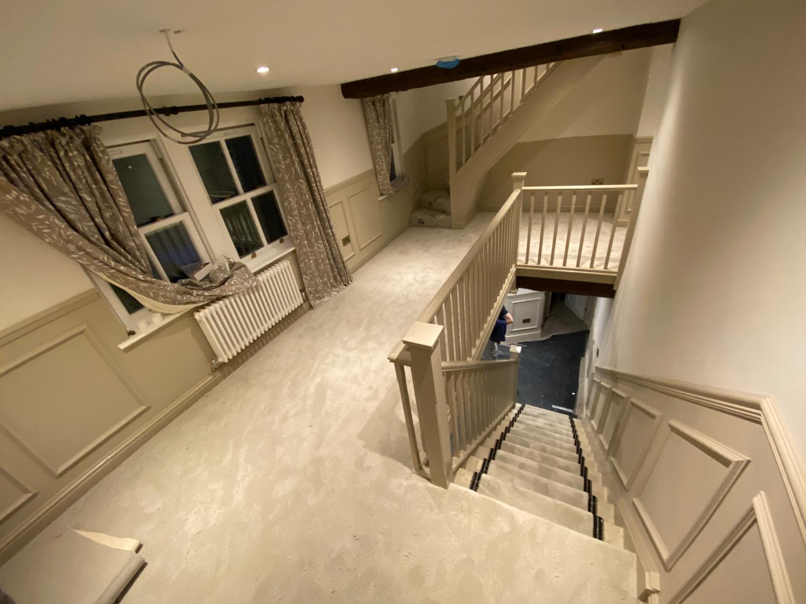 Browse recent MT Flooring installations — including full room fits and bespoke stair runners.